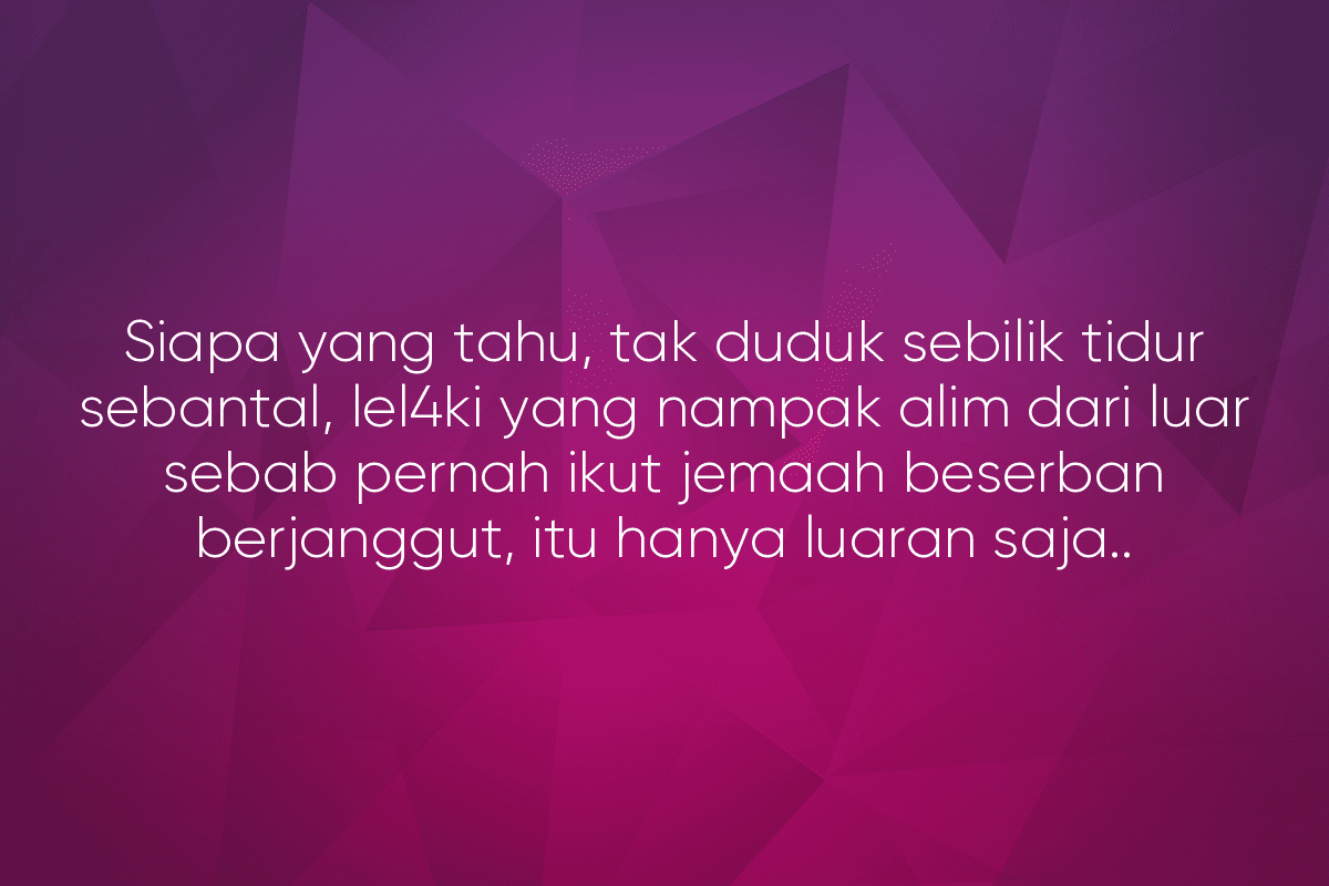 Siapa yang tahu, tak duduk sebilik tidur sebantal, lel4ki yang nampak alim dari luar sebab pernah ikut jemaah beserban berjanggut, itu hanya luaran saja..